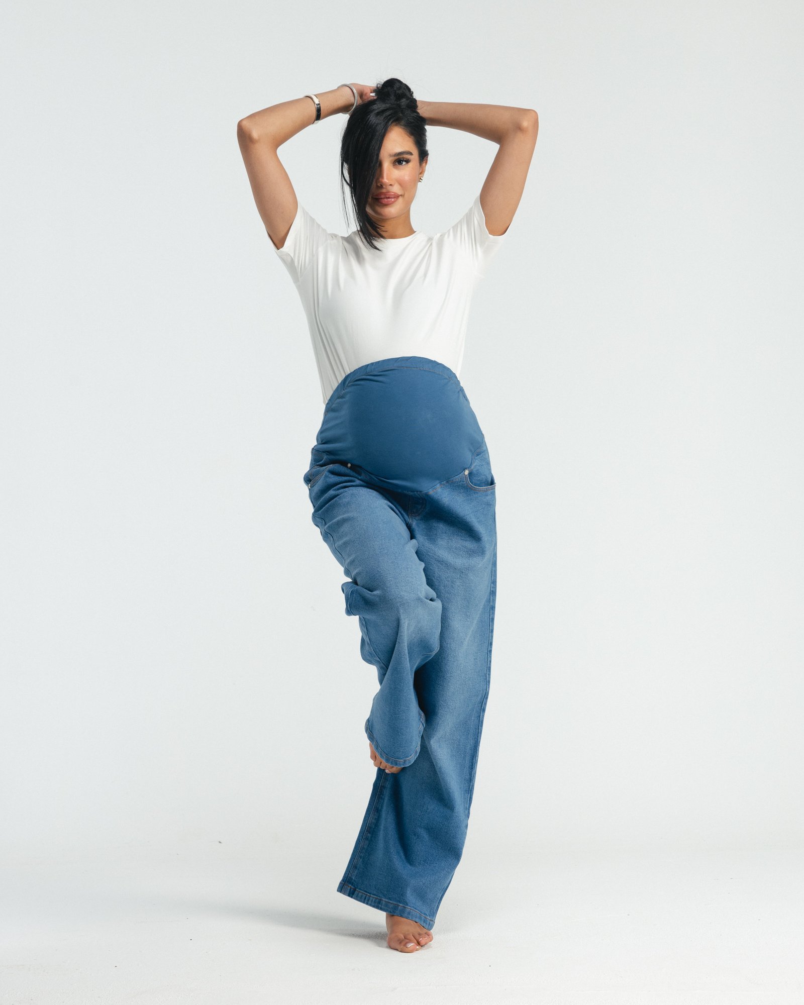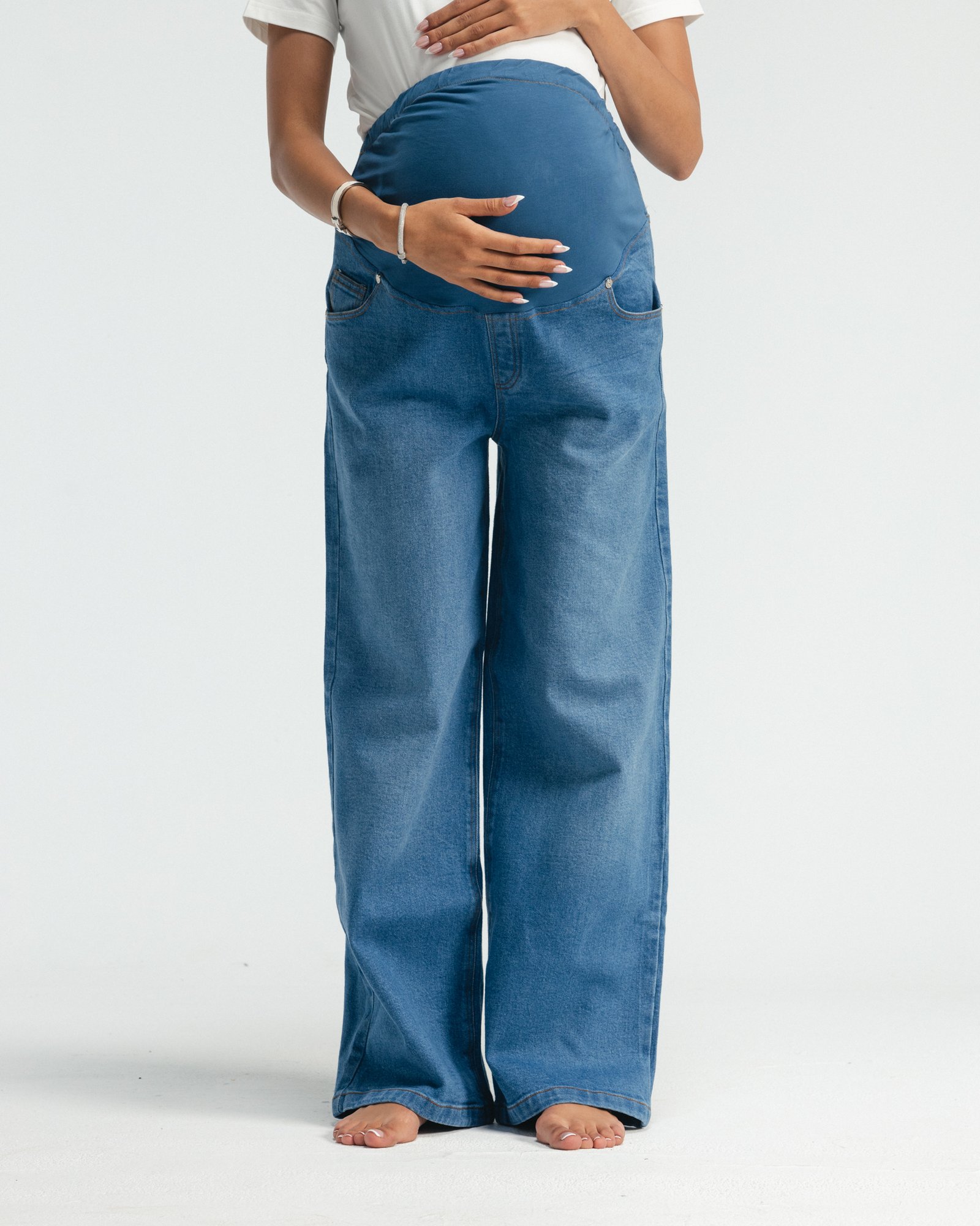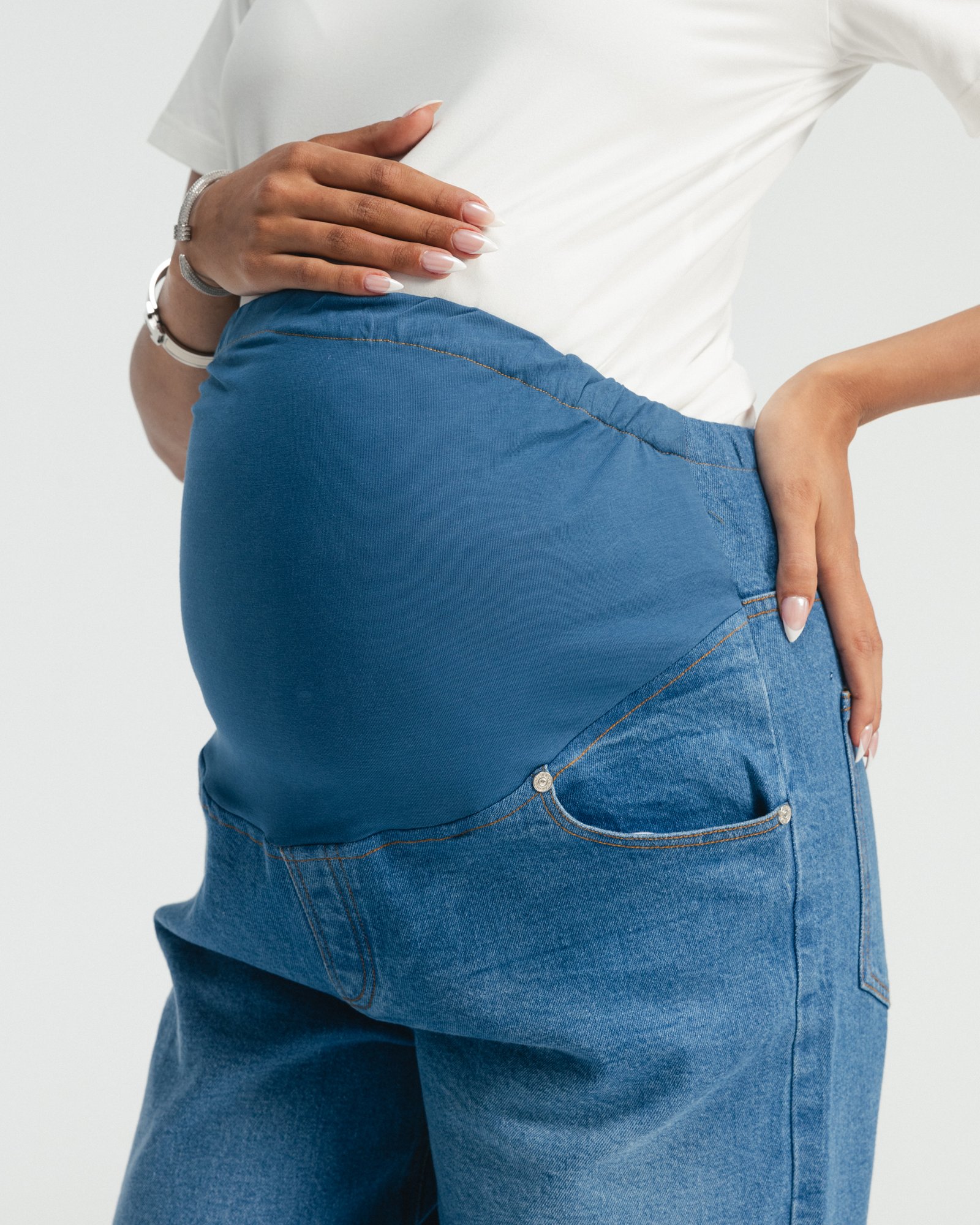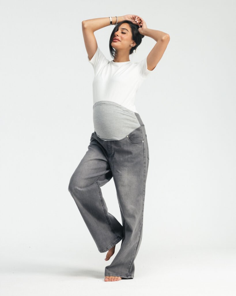 Hugs your bump, your body, and your feels — softly, like it should. Denim made for real-life motherhood.