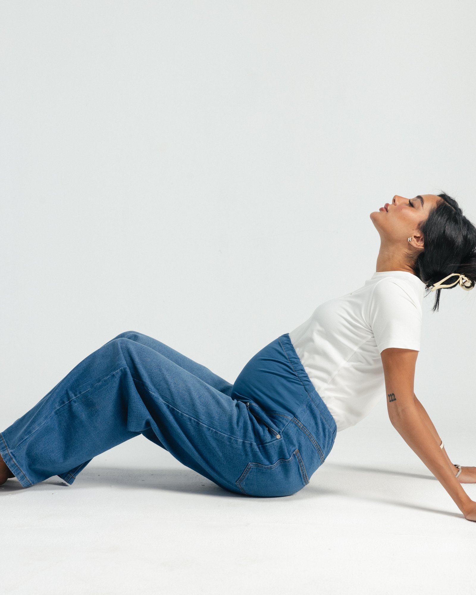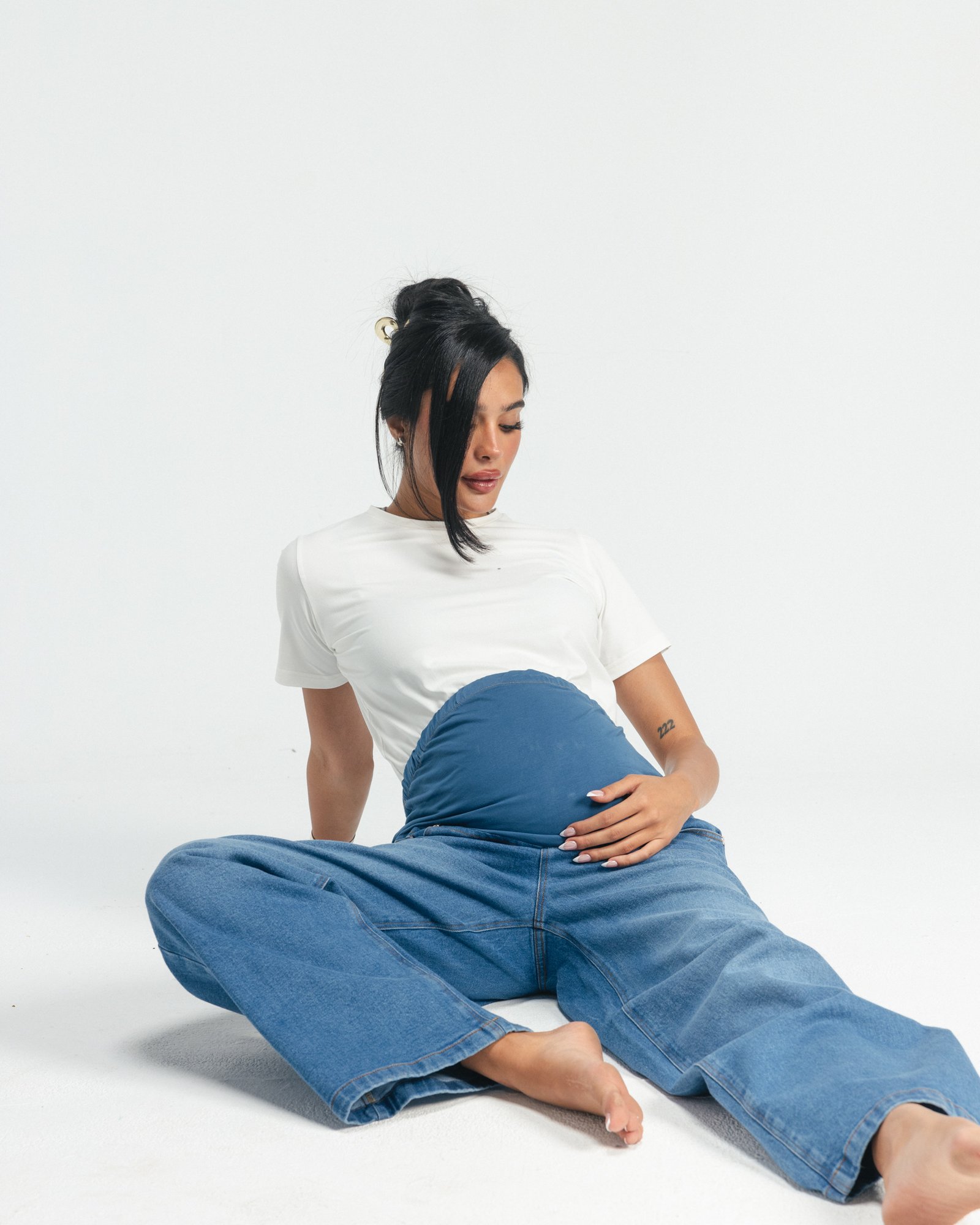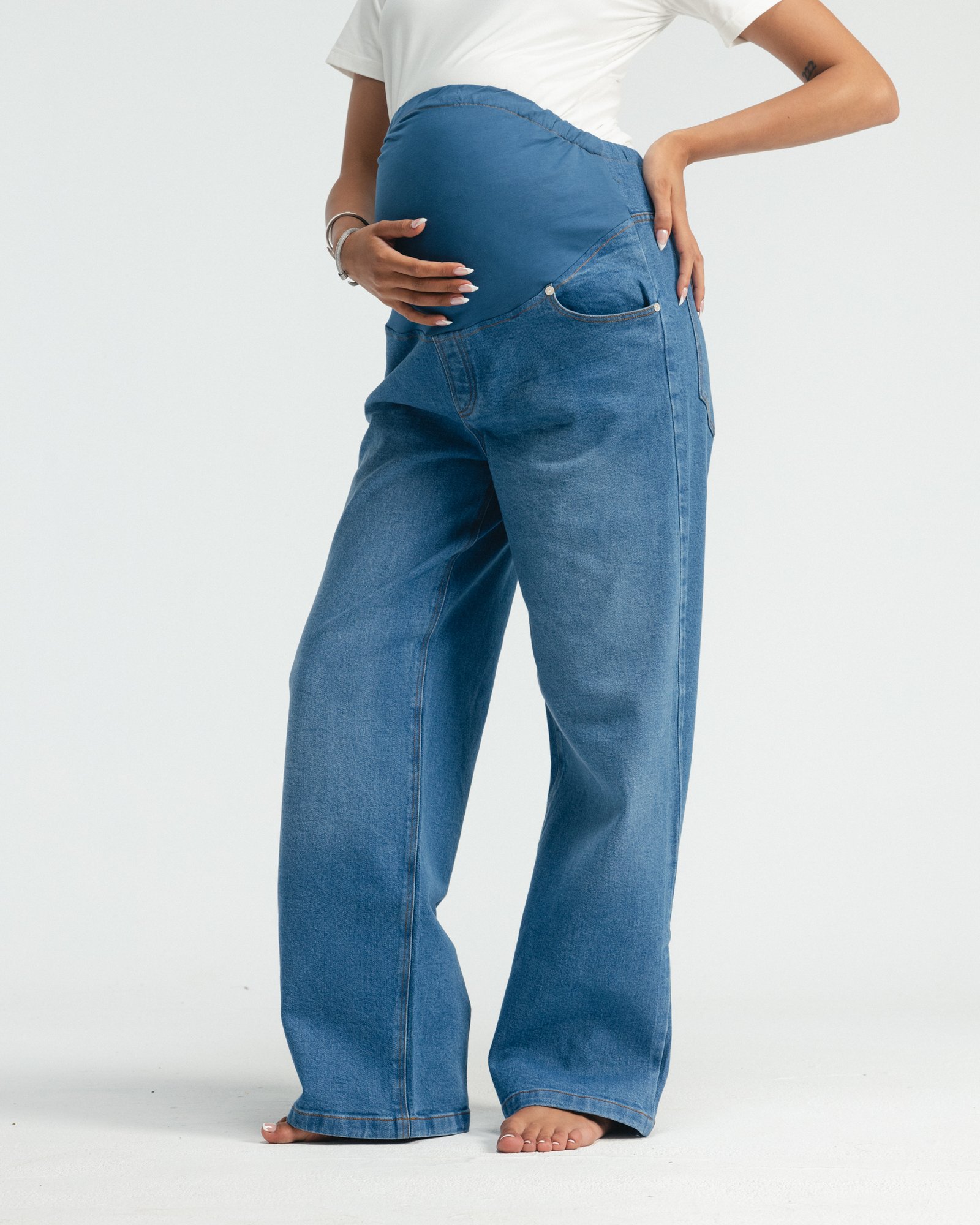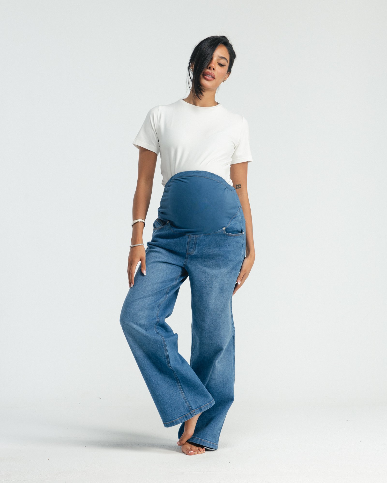 Hugs your bump, your body, and your feels — softly, like it should. Denim made for real-life motherhood.
