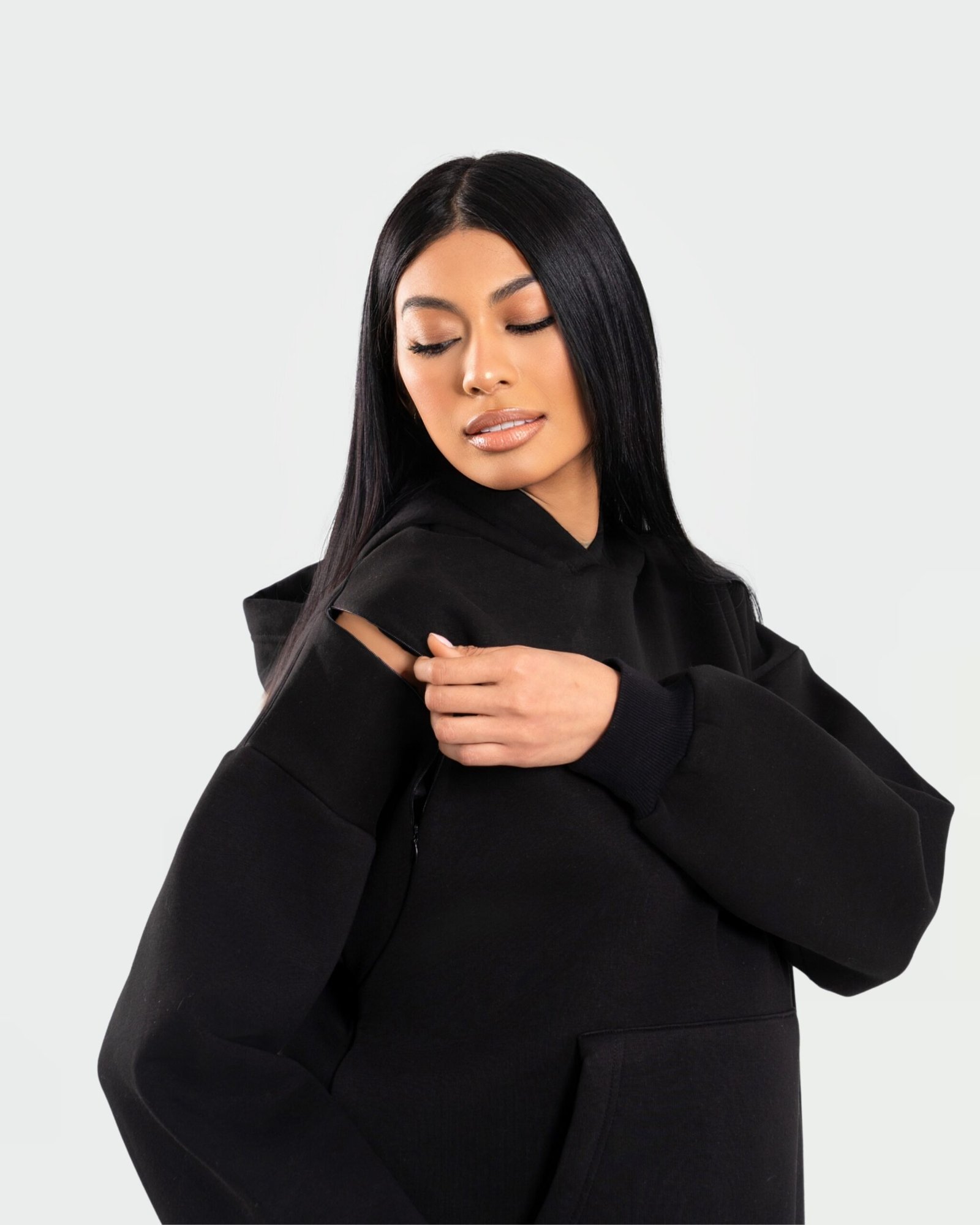 Effortlessly cool. Secretly functional. Meet your new daily uniform. The Off-Duty Hoodie is designed for the mama who wants to look like she made an effort, even when she rolled out of bed five minutes ago. It captures that coveted “model off-duty” aesthetic—oversized, structural, and undeniably chic—while hiding a superpower within its seams.